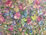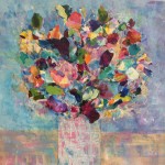 Paula is an avid gardener. She is fascinated by the almost endless variation in shape, color and texture of nature’s creations. In the summer, Paula’s Cape Cod gardens are a palette of vibrant florals; in the winter, Paula’s canvases become a multi-color array of florals inspired by the profusion of flowers in her summer gardens. Paula created multiple gardens by propagating or splitting and replanting an array of colorful day lilies, astilbes, irises, rudbeckia, hosta and hydrangea, her personal favorite. Enjoy Paula’s joyous florals reflective of the joy she experiences tending nature’s beauty.